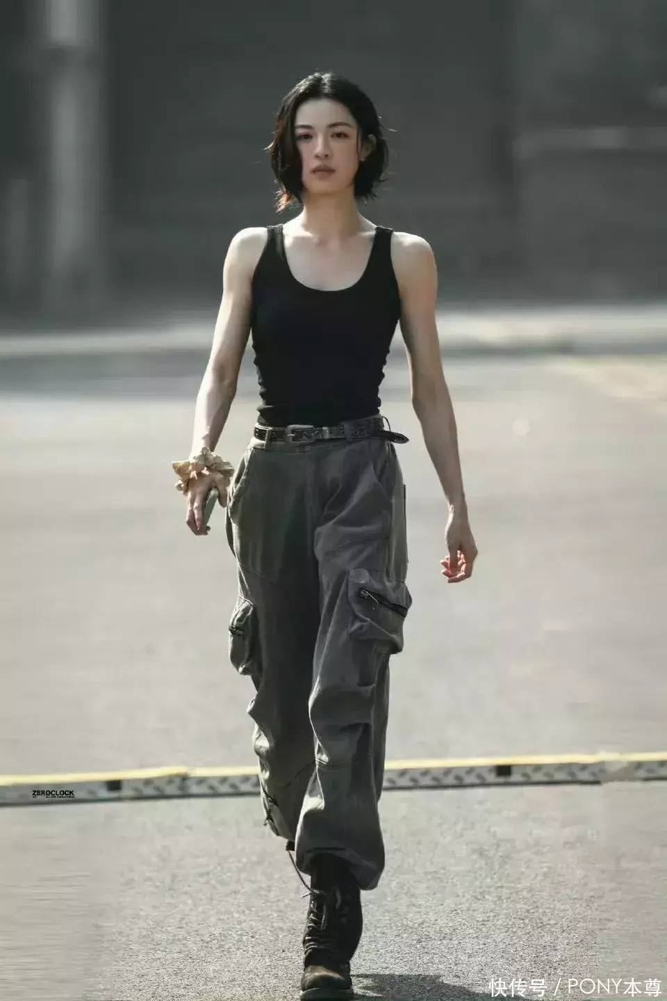 钟楚曦中分短发造型,搭配黑色无袖背心,对于身材优势的利用,那真是恰到好处,洋气时髦不失力量感。从钟楚曦的胳膊的肌肉线条来看,坚实的一字肩肩膀和纤细的胳膊让人过目不忘,尤其是搭配英气的脸型,那真是撩人于无形中。